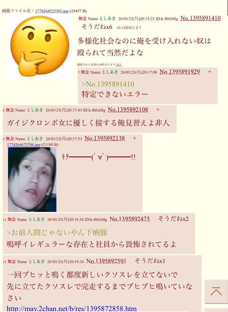 | … | 77無念Nameとしあき26/03/24(火)02:12:17No.1395965349+https://may.2chan.net/b/res/1395964317.htm |
