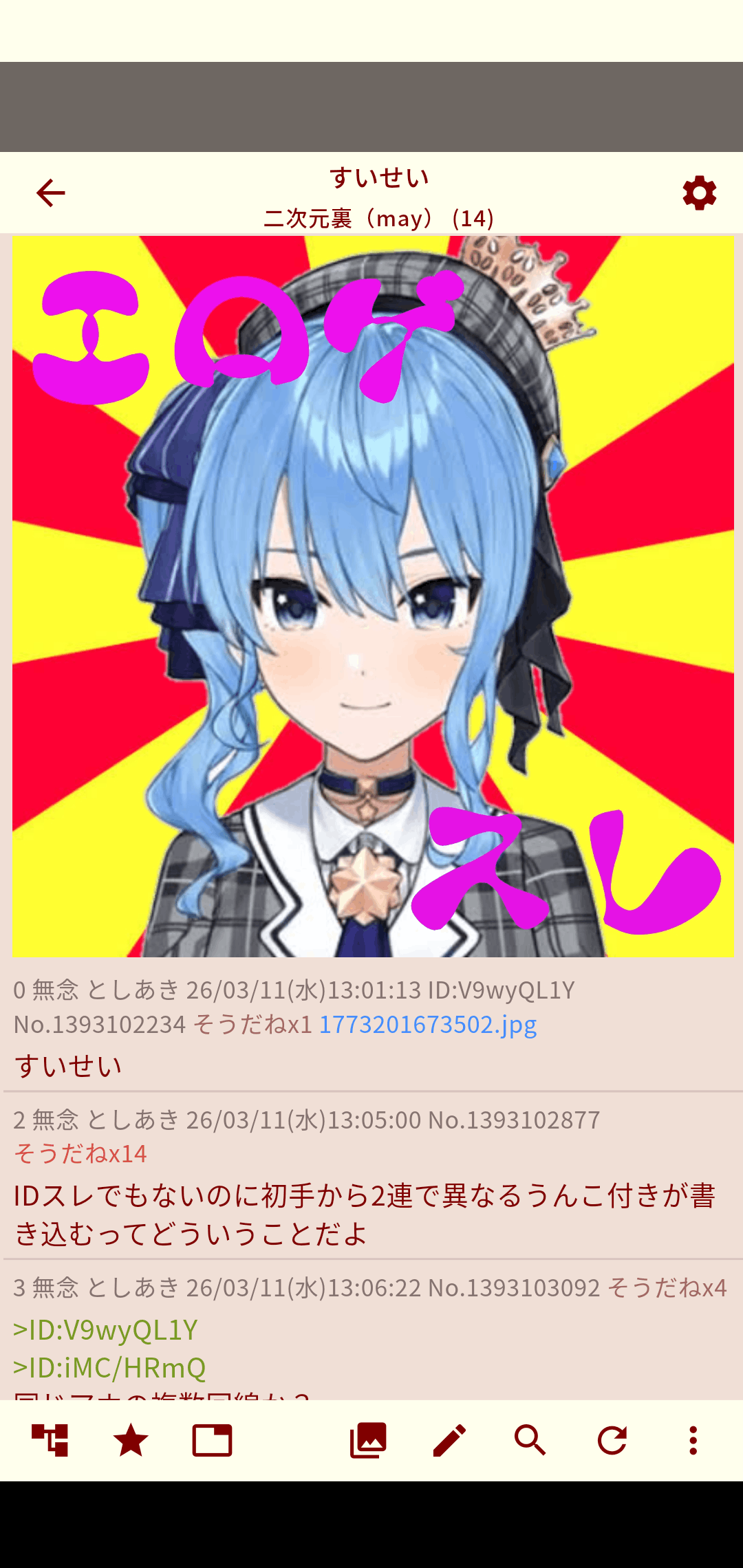 | … | 48無念Nameとしあき26/03/24(火)00:05:37No.1395950753そうだねx1 1774278337043.png-(653758 B) >虹裏でアニメキャラやめろって言うのは |