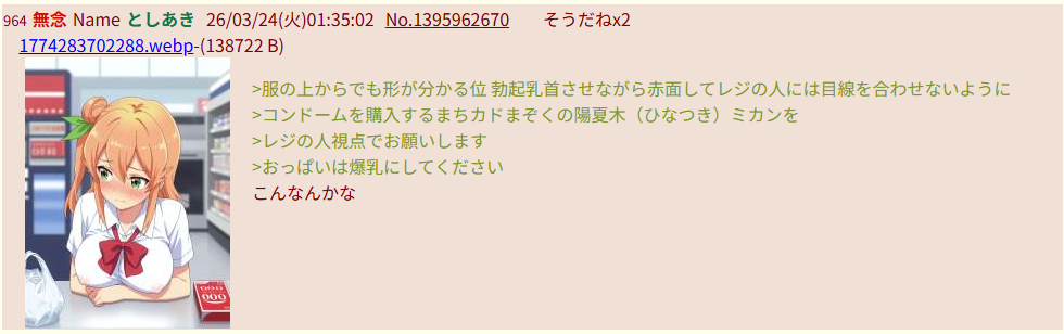 | … | 980無念Nameとしあき26/03/24(火)12:29:40No.1396008768+1000なら裸ワイシャツ祭り |