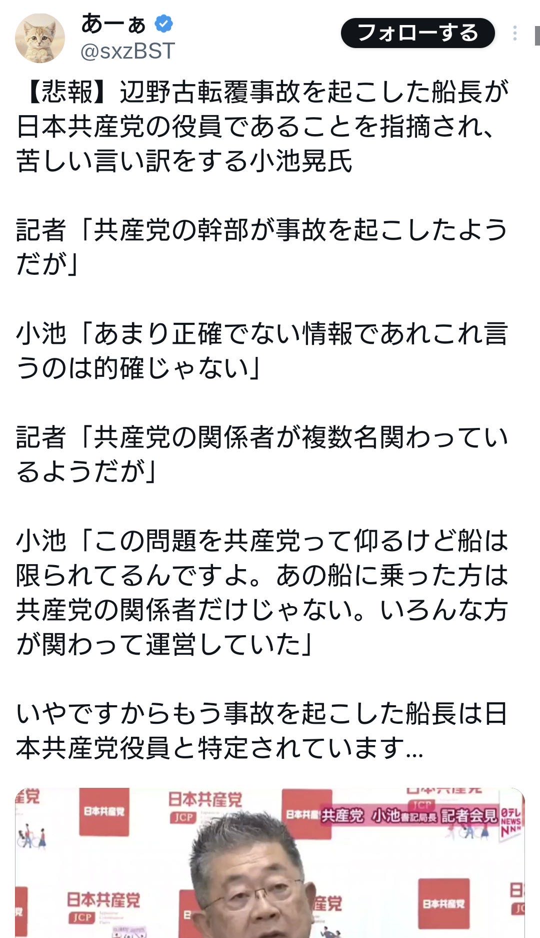 | … | 931無念Nameとしあき26/03/24(火)11:40:02No.1396001561+死んだ方の船長は社民党で死んでない方の船長は共産党っていう地獄絵図 |