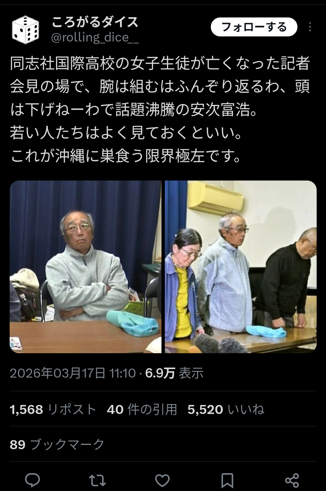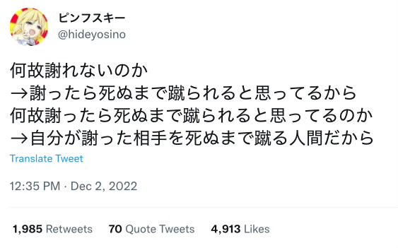 | … | 904無念Nameとしあき26/03/24(火)12:08:45No.1396005127そうだねx7 1774321725820.jpg-(29474 B) >謝ったら死ぬと思ってるから |