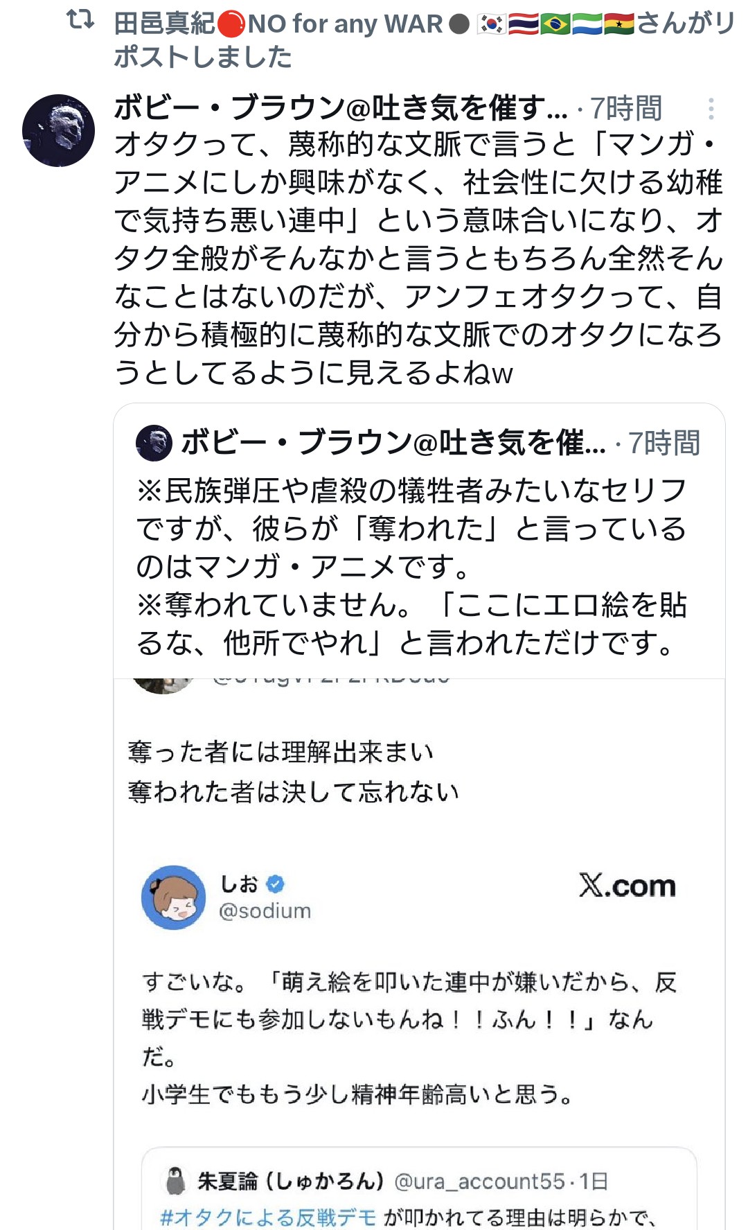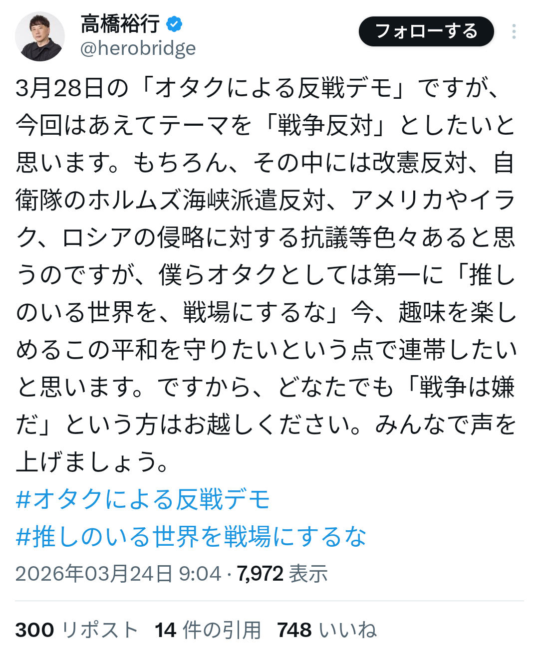 | … | 8無念Nameとしあき26/03/24(火)06:51:51No.1395973842そうだねx7>>オタクによる反戦デモ |