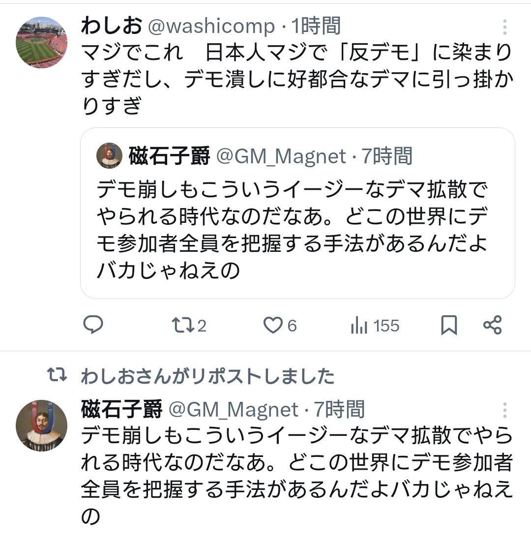 | … | 29無念Nameとしあき26/03/24(火)07:16:47No.1395975372そうだねx2>平和な日本でデモしたところで戯言でしかないよね |