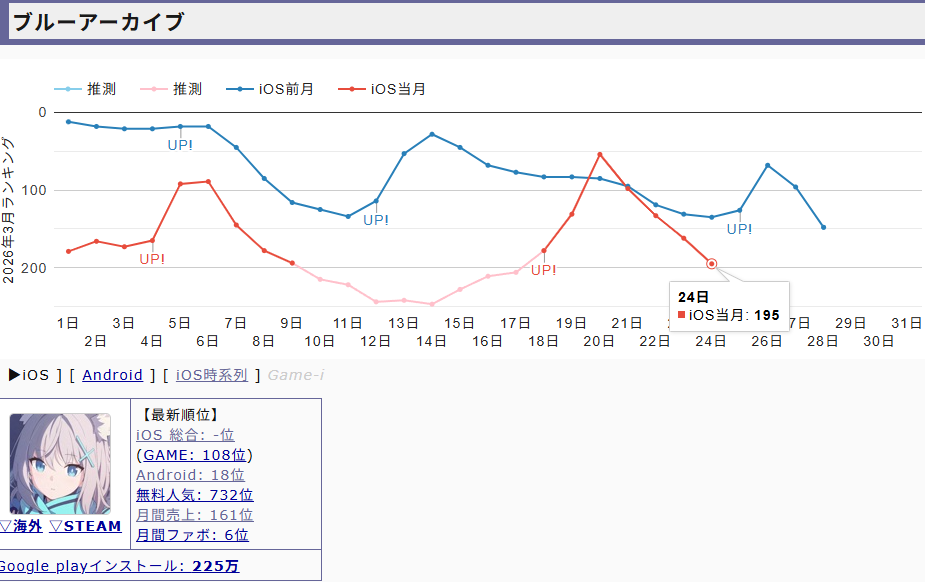 | … | 96無念Nameとしあき26/03/24(火)21:28:44No.1396108736そうだねx1アンツ乙ブルアカはセルランより赤字のほうがヤバいから |