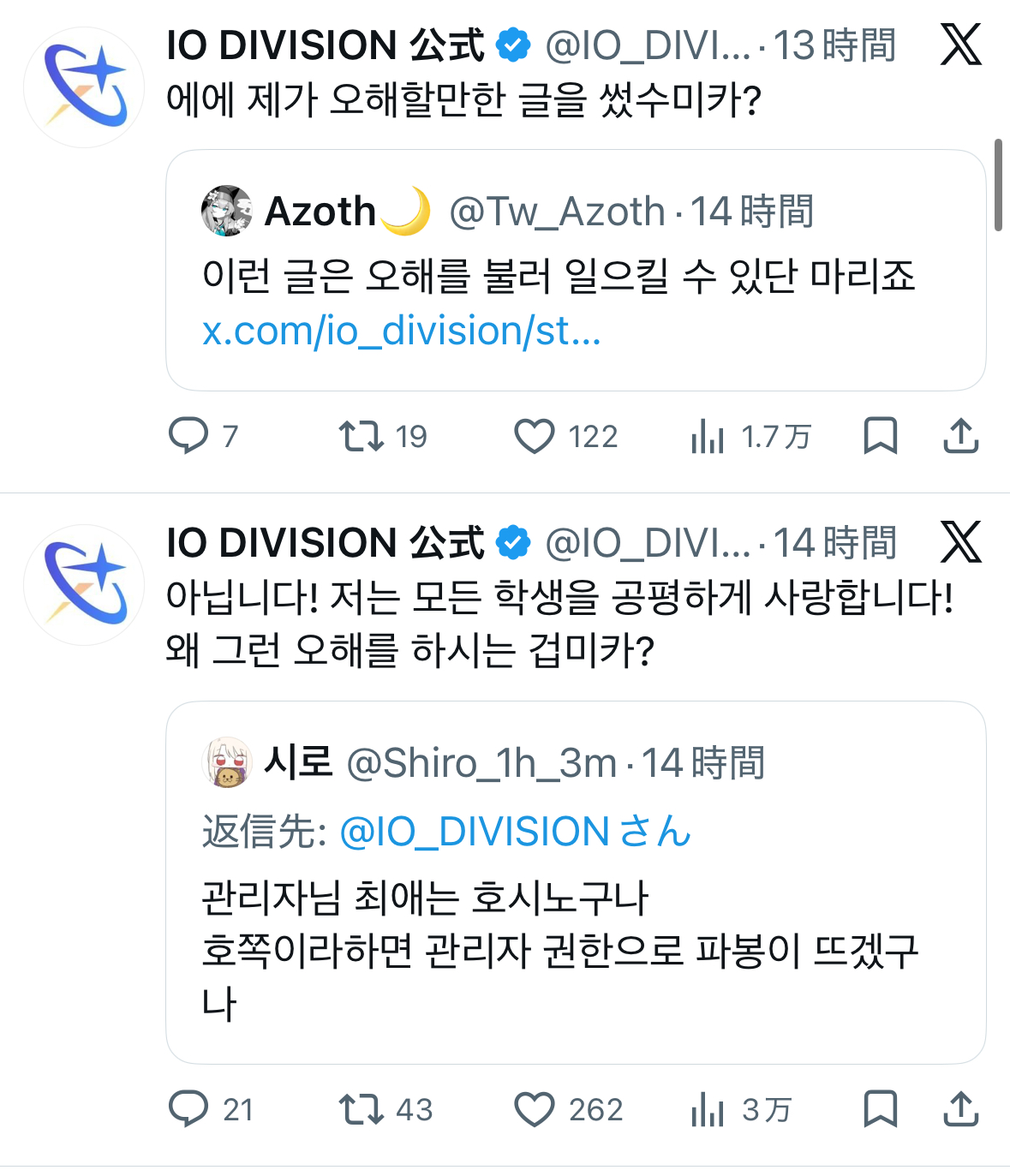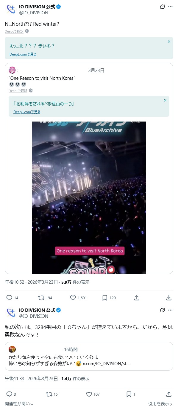 | … | 433無念Nameとしあき26/03/24(火)23:45:40No.1396147383+>IOって韓国ユーザーも「あいつらいつかいらん事言って自爆するぞ」なんて言ってるほどわよ |