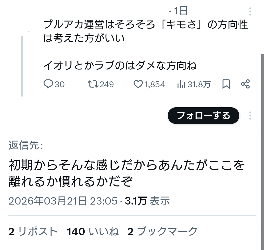 | … | 413無念Nameとしあき26/03/24(火)23:39:03No.1396145767+まさか公式広報担当までブルアカエアプなのかよ… |