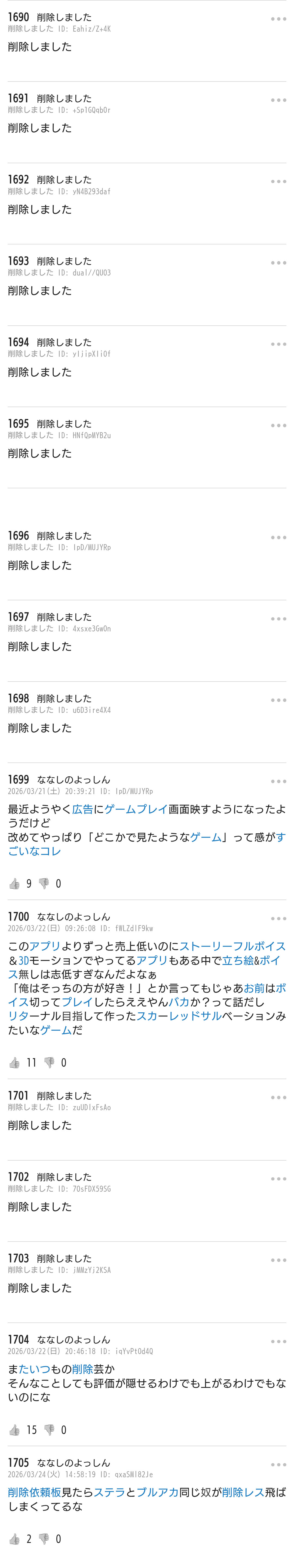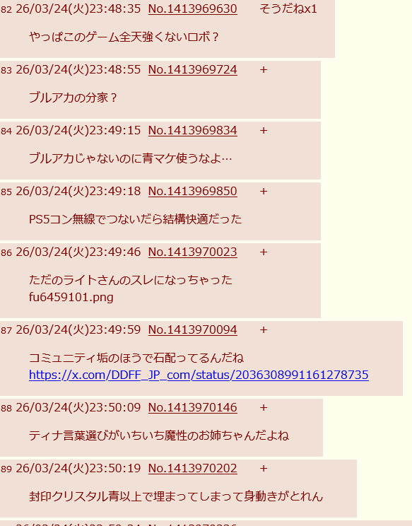 | … | 440無念Nameとしあき26/03/24(火)23:48:04No.1396147900そうだねx1あんだけ推しだのほざいといて自分はゲームやってないんわよ? |