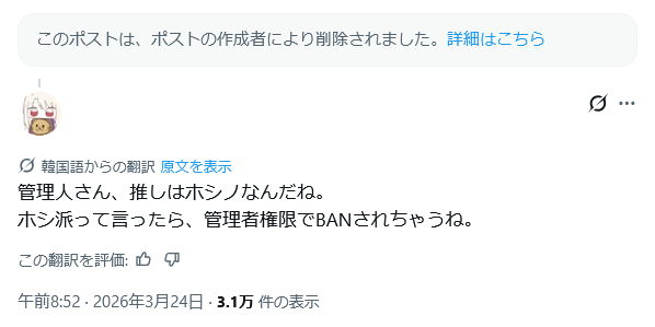 | … | 431無念Nameとしあき26/03/24(火)23:45:01No.1396147223そうだねx1IOって韓国ユーザーも「あいつらいつかいらん事言って自爆するぞ」なんて言ってるほどわよ |