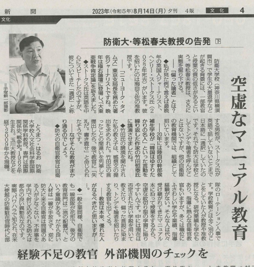 ここ10年くらい外部講師がネトウヨみたいもんだったけど限度弁えろよ