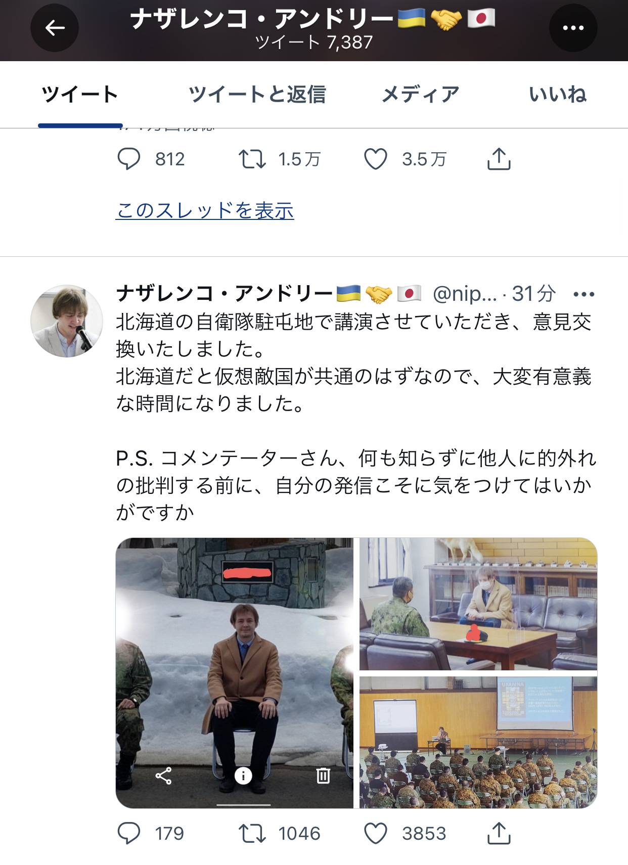| … | 989無念Nameとしあき26/03/25(水)01:35:36No.1396168687+>今後ネトウヨが「でも中国も悪いんですよ」って言い出すのはいいとして過去自衛隊に講師として呼ばれた連中がそれ言い出したらとんでもないことになる |