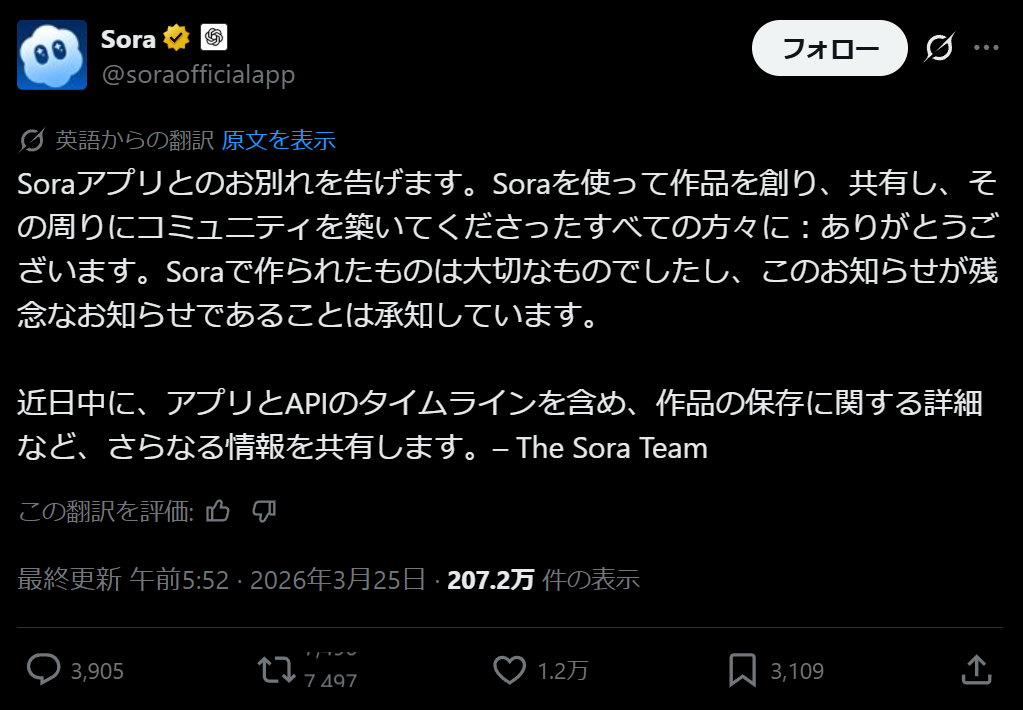 | … | 26無念Nameとしあき26/03/25(水)07:41:34No.1396190430そうだねx14OpenAIてもしかしてやばい? |