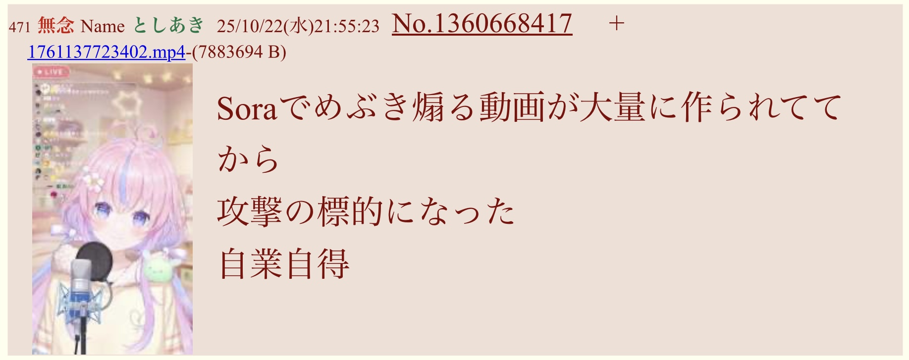 SORA2スレ削除された記事が1件あります.見る