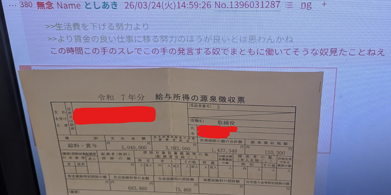| … | 49無念Nameとしあき26/03/25(水)11:11:35No.1396217091+深夜に働いてるから!無職じゃ無いから! |