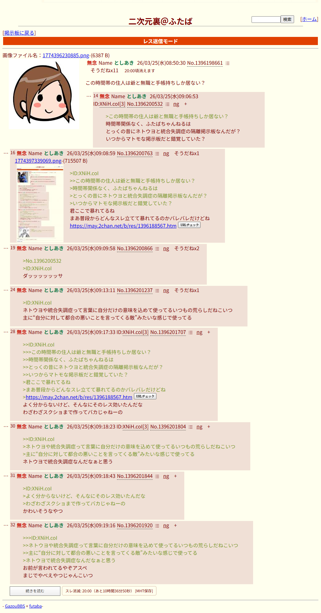 | … | 20無念Nameとしあき26/03/25(水)09:10:38No.1396200946そうだねx4>時間帯関係なく、ふたばちゃんねるは |
