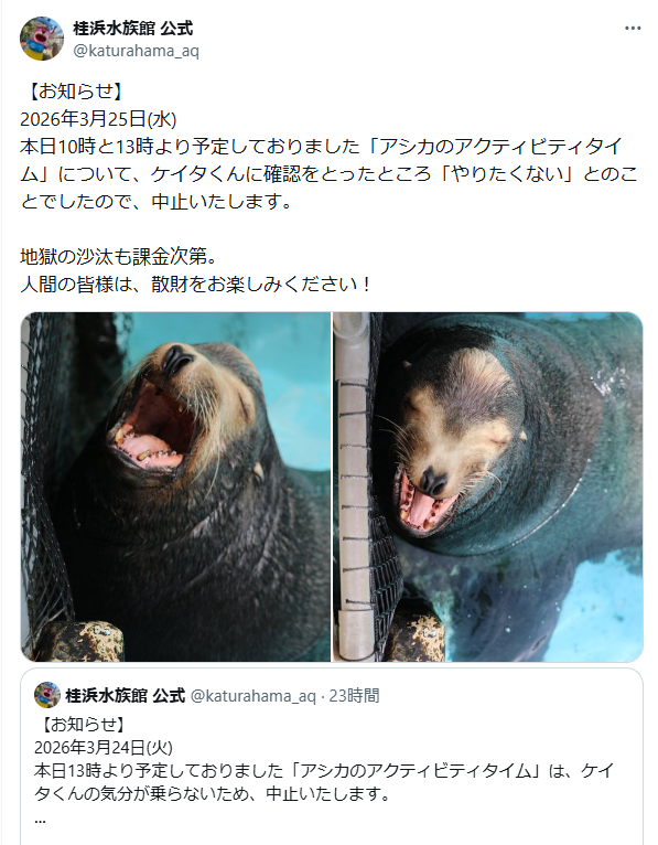 | … | 34無念Nameとしあき26/03/25(水)11:22:20No.1396218769+ 1774405340781.png-(392319 B) 本日9時より予定しておりました「たぬきの勤労タイム」について |