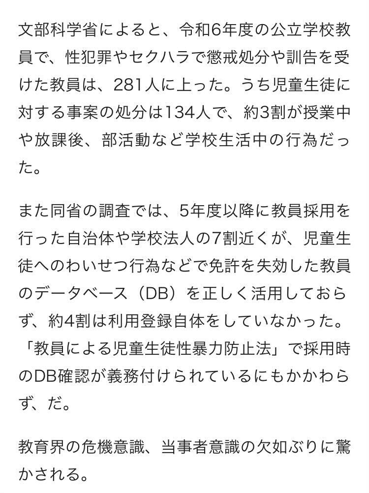 | … | 12無念Nameとしあき26/03/25(水)09:08:43No.1396200738+クソ変態がその欲望を果たそうとすると教師になってその立場を利用するのが一番ってことなんだろうな |