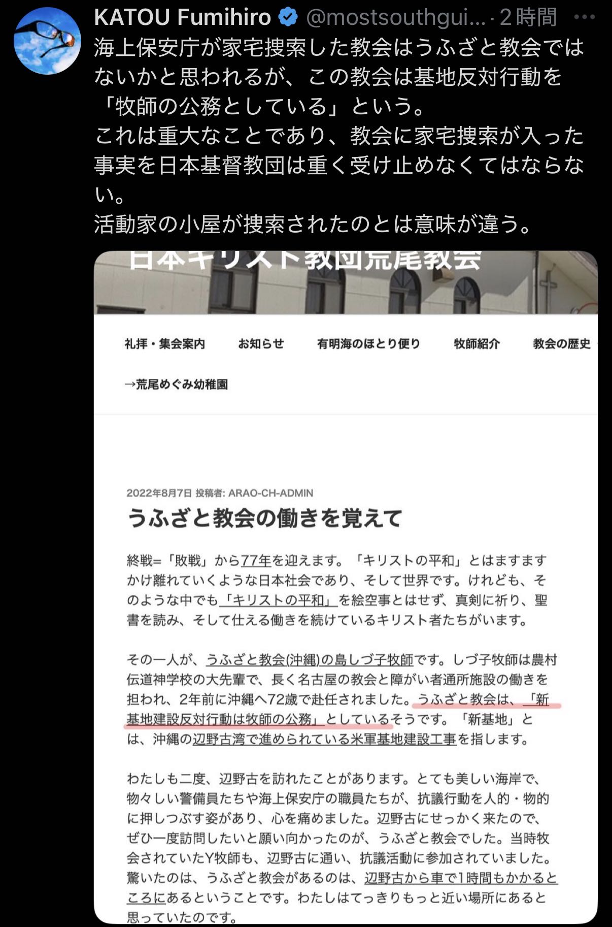 | … | 22無念Nameとしあき26/03/25(水)20:44:34No.1396326487そうだねx2今回さ不屈の金井船長と平和丸の諸喜田船長以外にも活動家の人間がもう一人船に乗ってたらしいけどそいつの名前でないな |