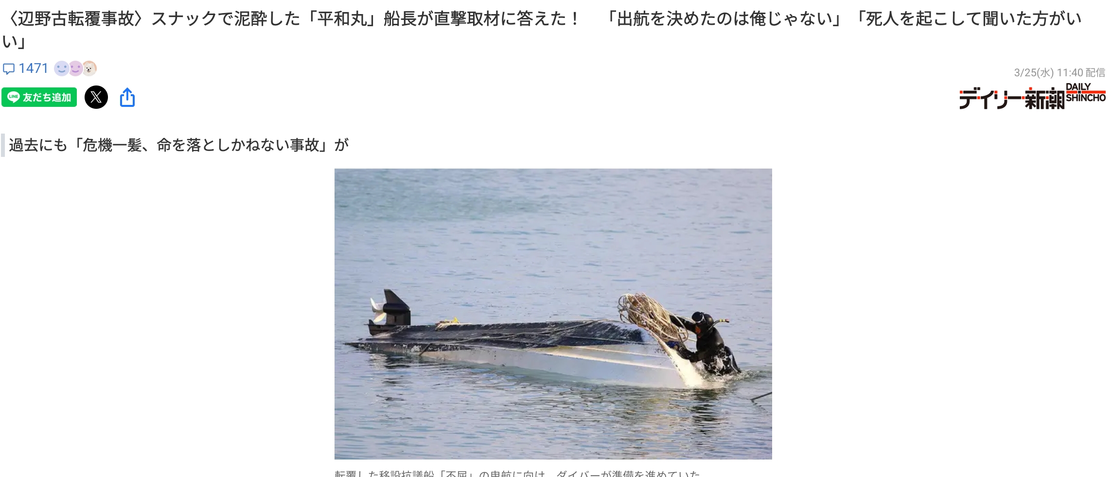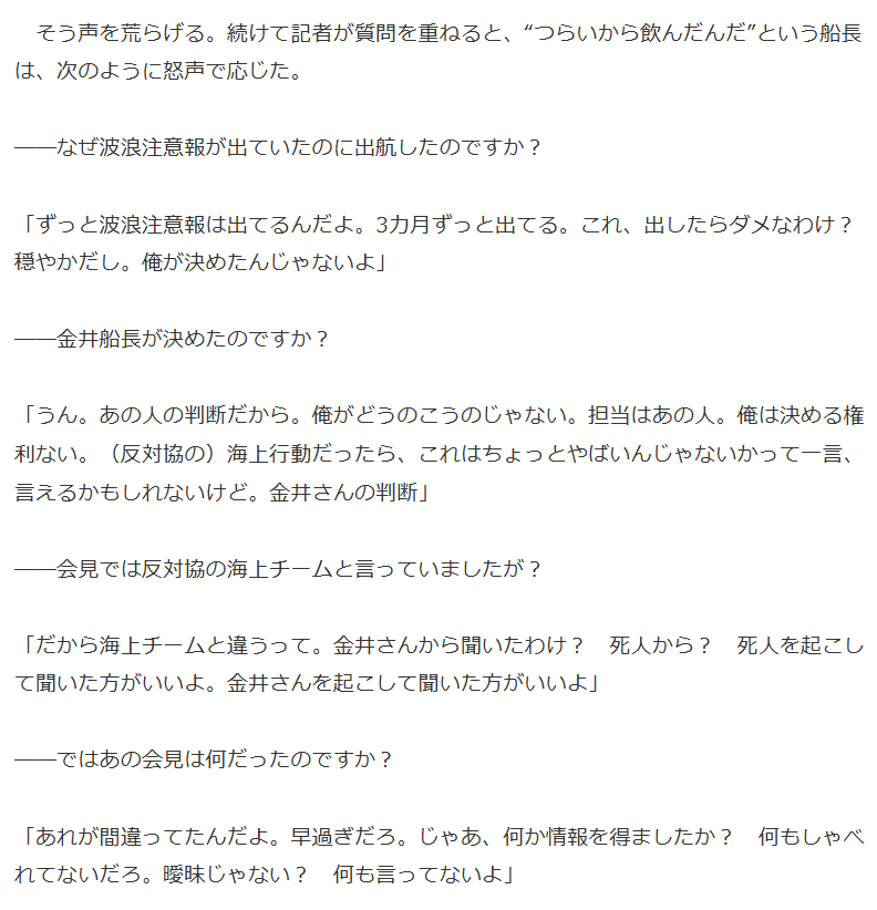 | … | 815無念Nameとしあき26/03/25(水)21:26:13No.1396338187+「俺は(出航の可否を)決める権利ない」この発言自体 |