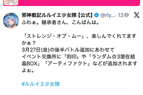 | … | 375無念Nameとしあき26/03/25(水)21:23:43No.1396337498+ホーム画面のクトゥルフ様をハスター様とかに変更できるようにならないかな |