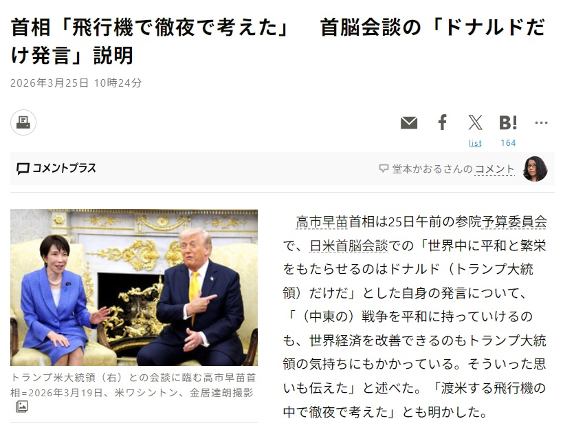 | … | 93無念Nameとしあき26/03/25(水)23:30:31No.1396368581そうだねx7>いや普通にその一点だけでどんな政治家よりもマシでしょ真剣に |