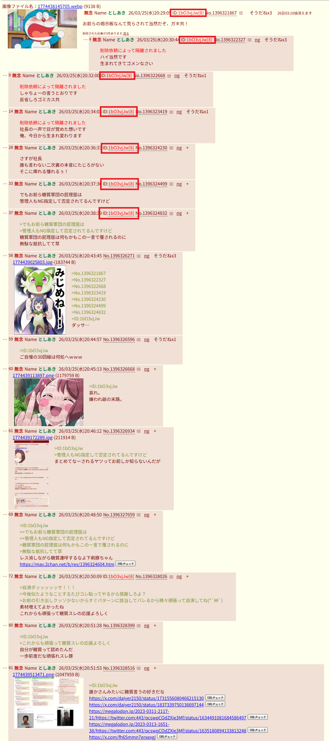 | … | 48無念Nameとしあき26/03/25(水)20:40:41No.1396325437そうだねx3>お前らの掲示板なんて荒らされて当然だぞ、ガキ共! |