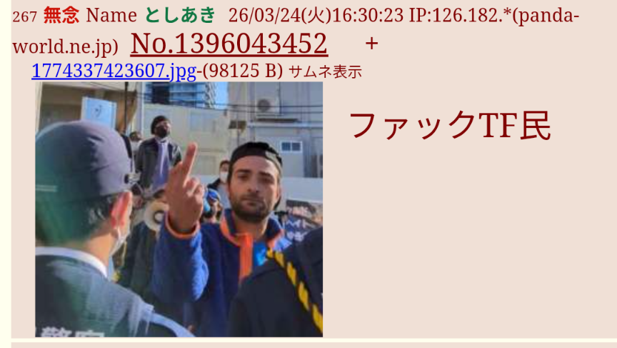 | … | 178無念Nameとしあき26/03/25(水)21:59:08No.1396346801そうだねx1>左翼のくせにタワマン住んでる糞探偵には負けねえ |