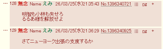 | … | 131無念Nameとしあき26/03/25(水)21:38:08No.1396341381そうだねx7>明智も小林も失せろ |