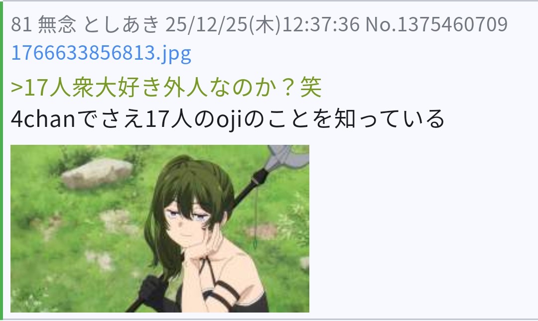 | … | 18無念Nameとしあき26/03/25(水)20:34:58No.1396323723そうだねx3>お前らの掲示板なんて荒らされて当然だぞ、ガキ共! |