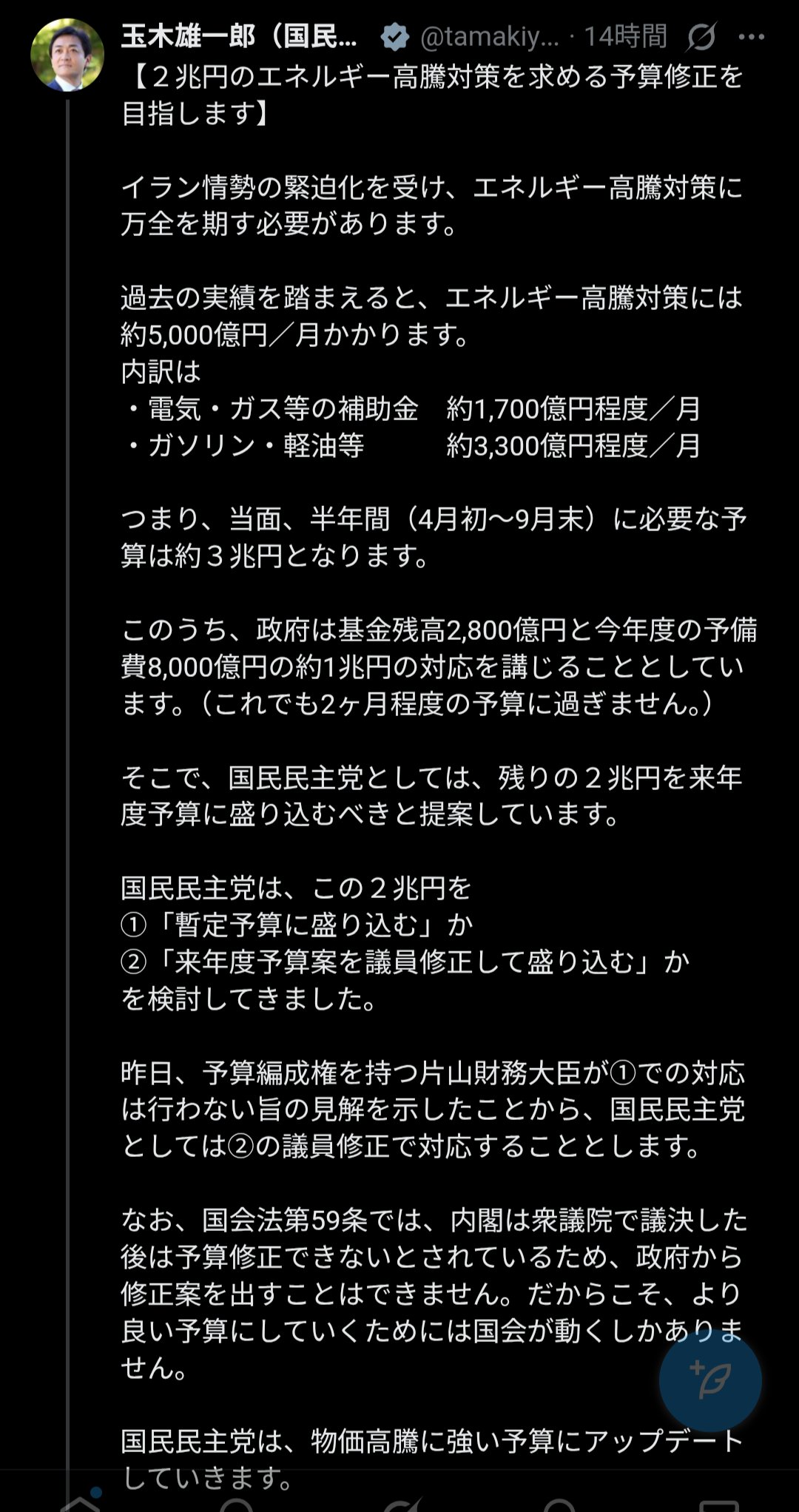 | … | 19無念Nameとしあき26/03/26(木)05:50:24No.1396398139+補助金出してる間にイランから輸入再開出来ればいいだけだよ |