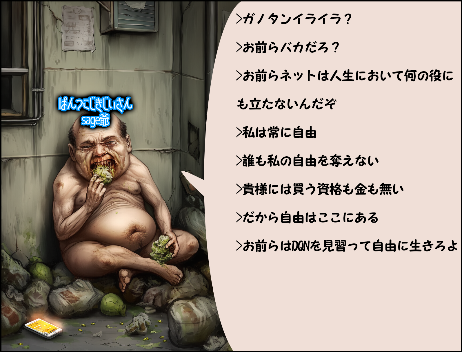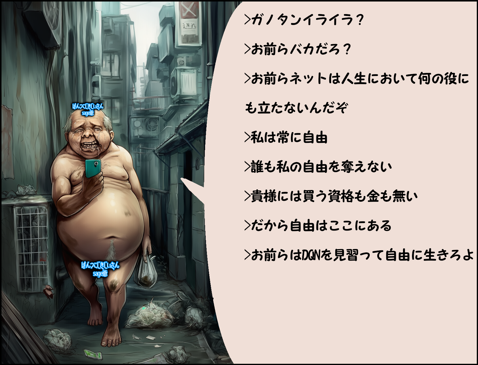 | … | 58無念Nameとしあき26/03/26(木)12:26:01No.1396437223そうだねx6障害差別はよくないけどsage爺の場合は荒らし活動を行うにあたっての精神回復行動っぽいからなぁ… |