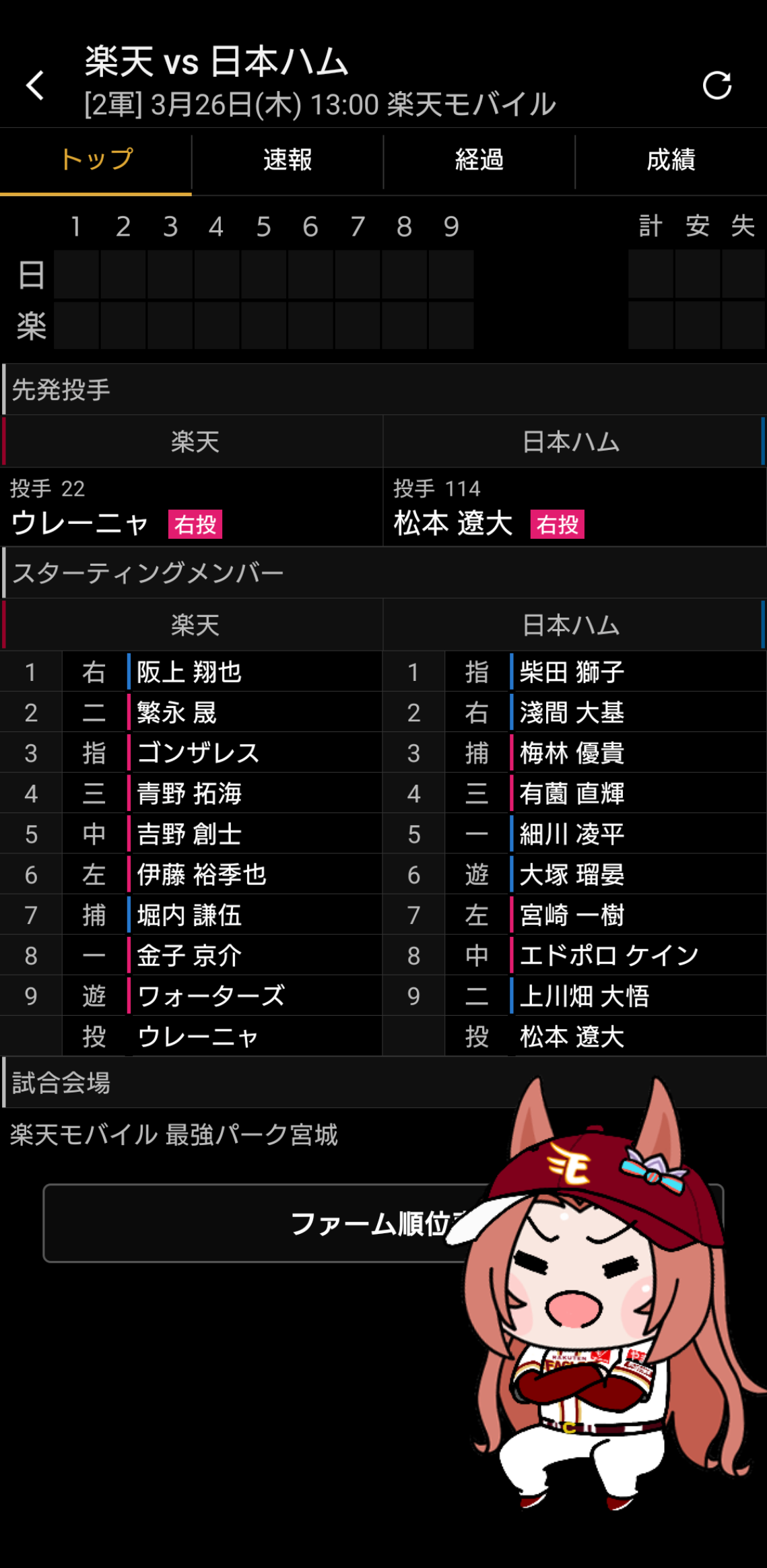 | … | 62無念Nameとしあき26/03/26(木)12:34:29 ID:R0gpQDJUNo.1396438839+ 1774496069728.jpg-(146065 B) 本日のファームのスタメンデース |