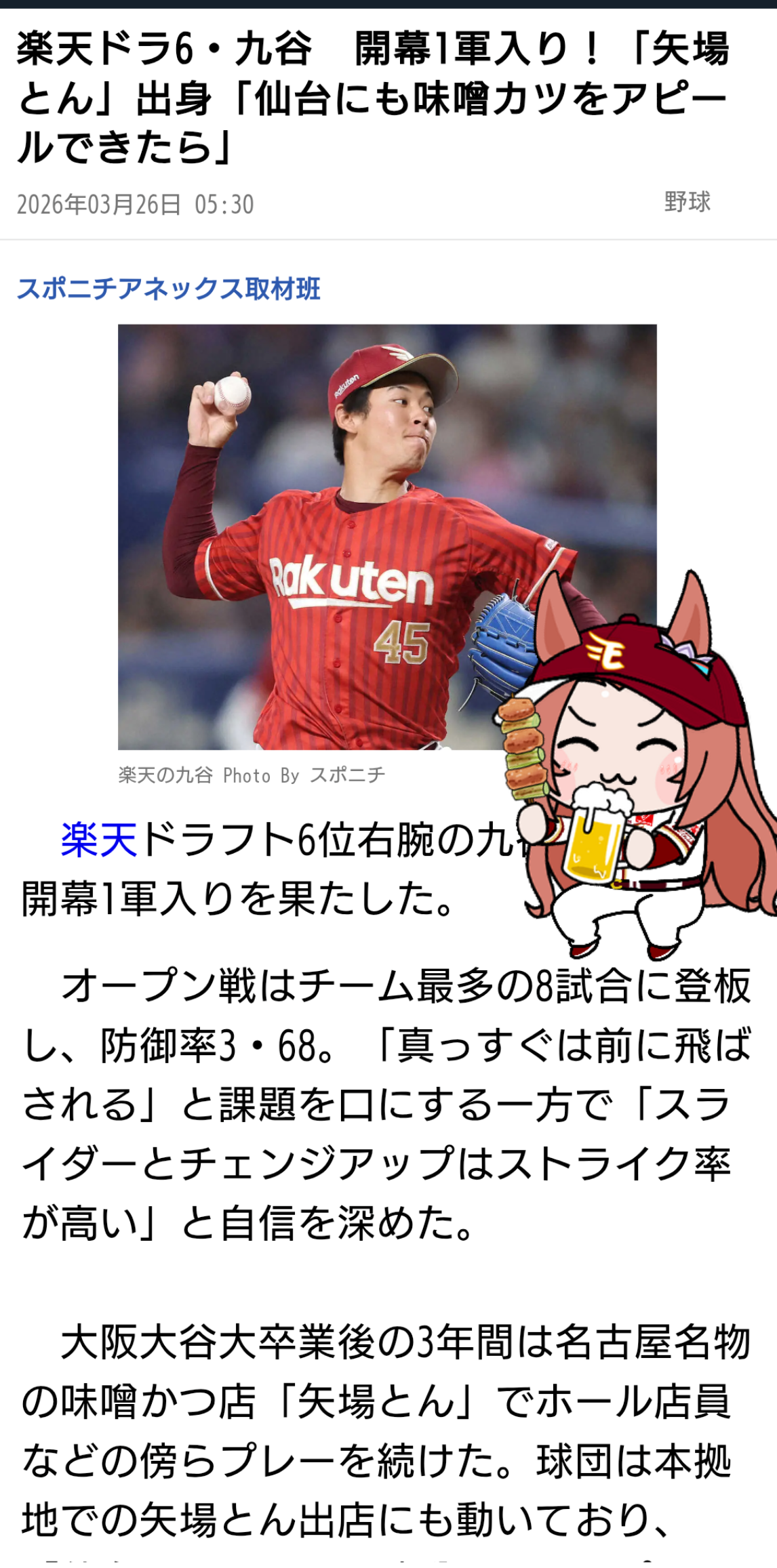 | … | 149無念Nameとしあき26/03/26(木)13:07:00 ID:Jf4/tMP2No.1396444942そうだねx2 1774498020508.jpg-(209662 B) >楽天ドラ6・九谷 開幕1軍入り!「矢場とん」出身「仙台にも味噌カツをアピールできたら」 |