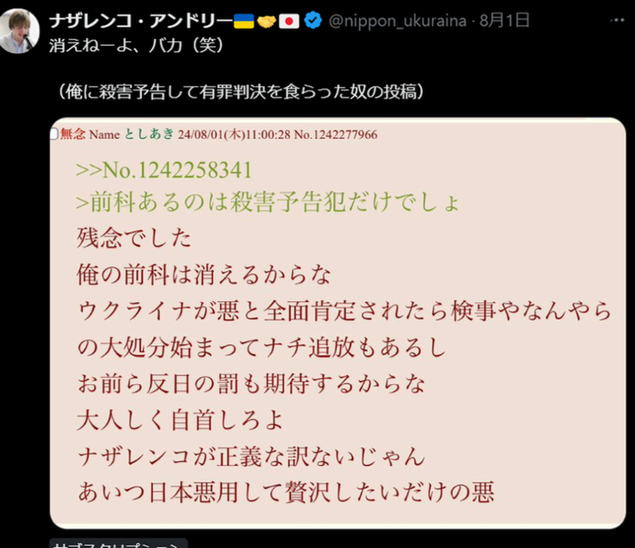 | … | 136無念Nameとしあき26/03/26(木)21:40:36No.1396539555そうだねx2>>有罪判決を食らっても反省するどころかこんな態度だから |