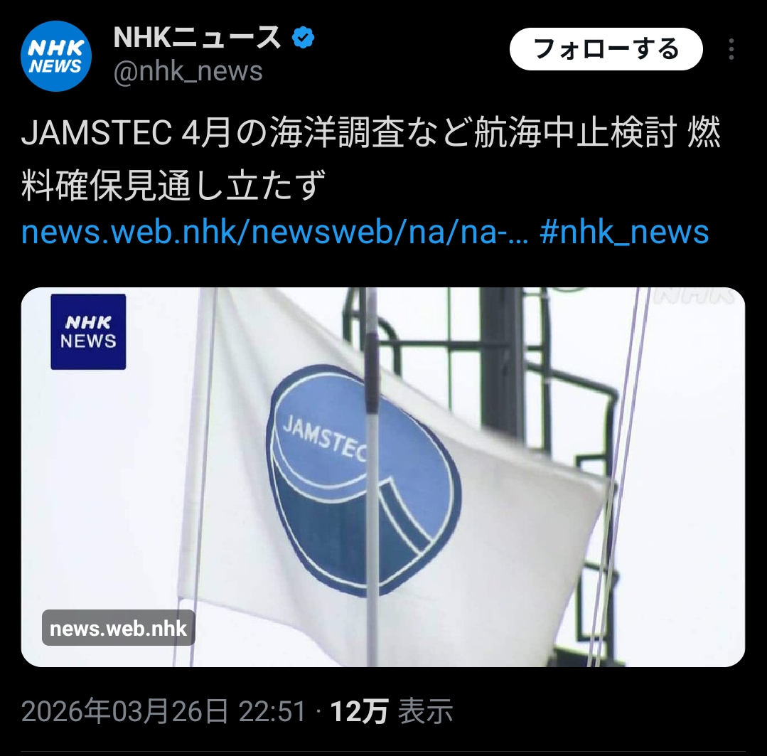 | … | 457無念Nameとしあき26/03/27(金)09:58:10No.1396623601+>この件に関しちゃ頑張って欲しいと思うが始める時点でJAMSTECのマネージャーが |