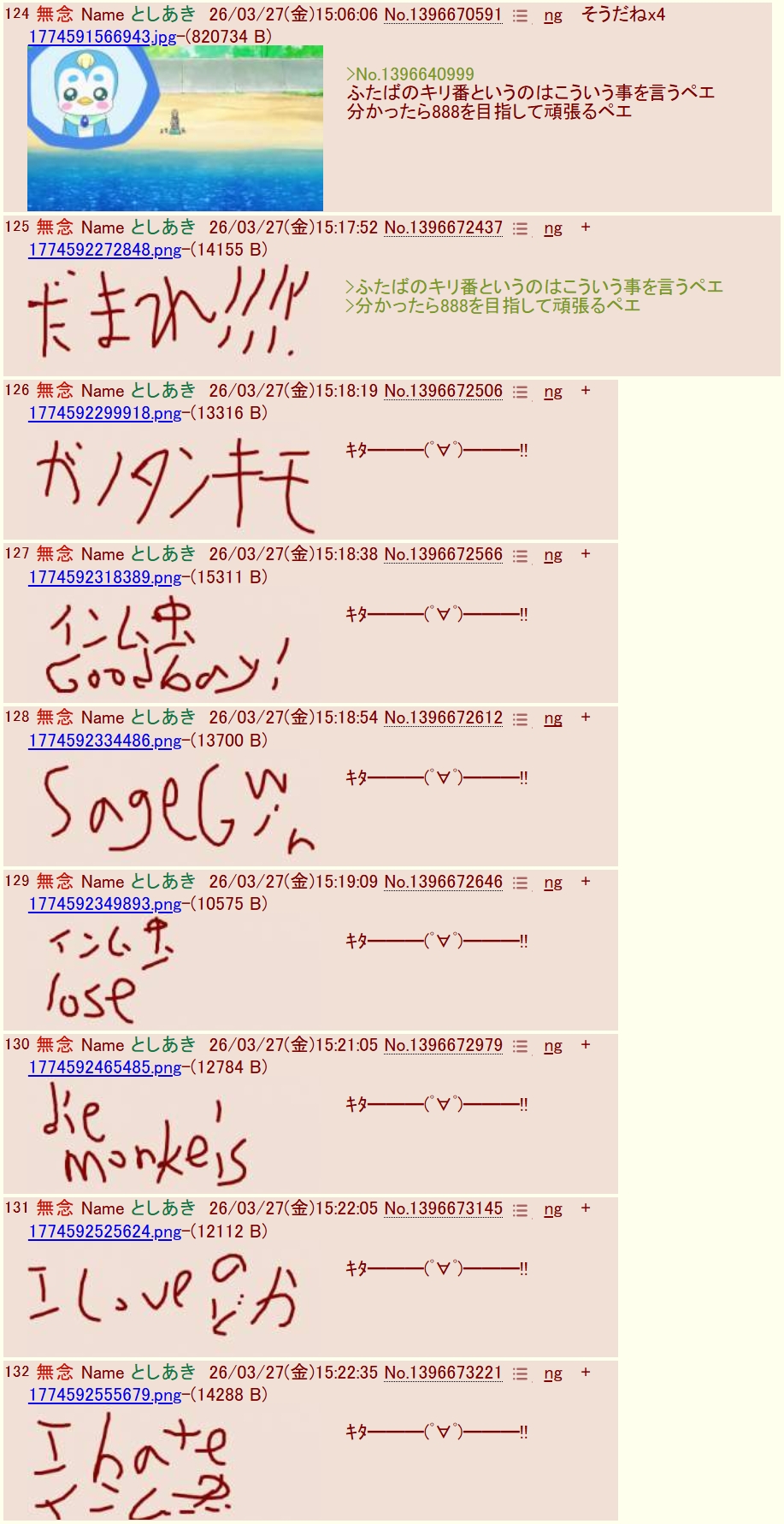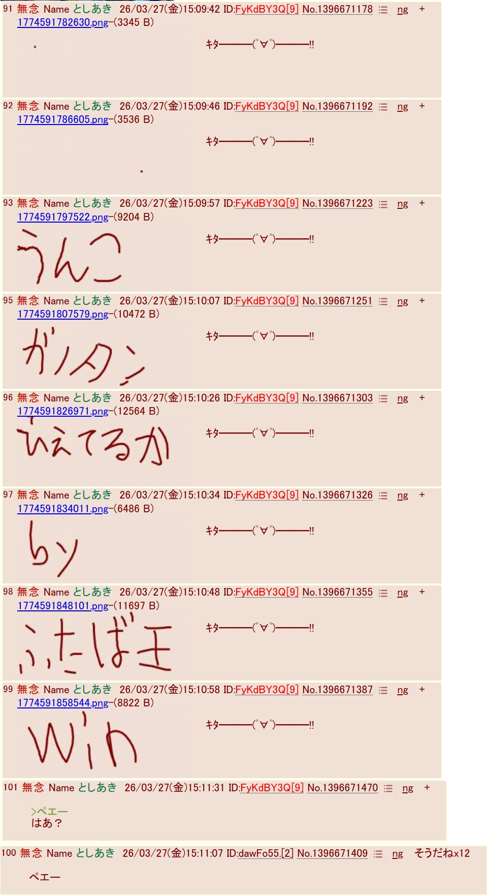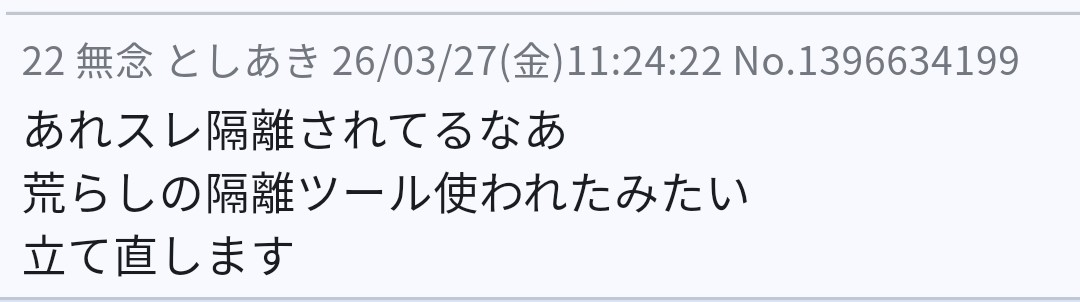 | … | 123無念Nameとしあき26/03/27(金)15:26:25 ID:.mOqv49.No.1396673794そうだねx1sage爺また敗走 |