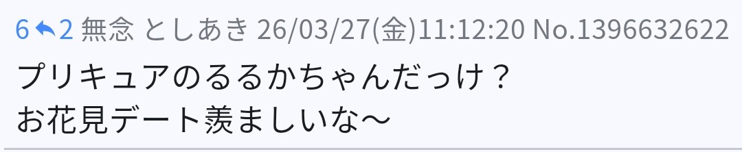 | … | 81無念Nameとしあき26/03/27(金)14:45:35 ID:8aKzFPw6No.1396667685そうだねx7>こんにちは |