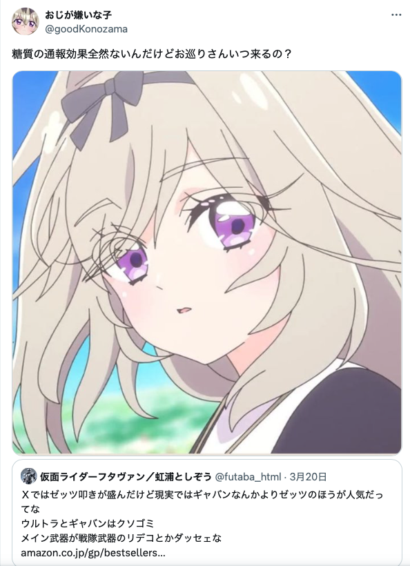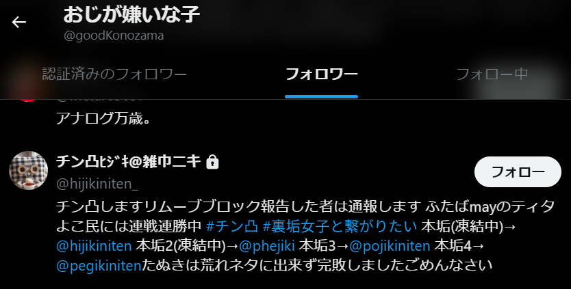 | … | 67無念Nameとしあき26/03/27(金)13:16:09 ID:AgbkDJcsNo.1396654266そうだねx10>しかし23フォロワーとかしょぼすぎてなっさけないのぉ…どこでも不人気な哀れなやつじゃ… |