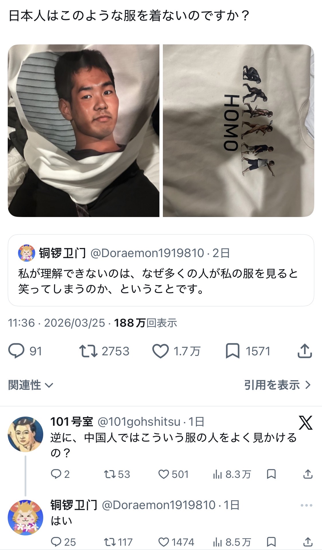 | … | 53無念Nameとしあき26/03/27(金)12:40:36 ID:RE12nVecNo.1396647373そうだねx10>日本人はこのような服を着ないのですか? |