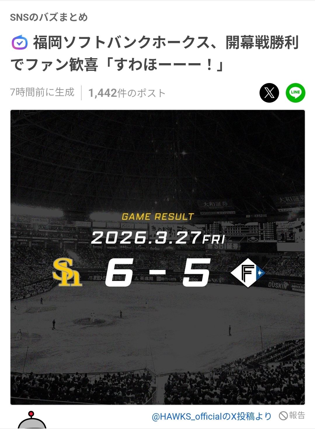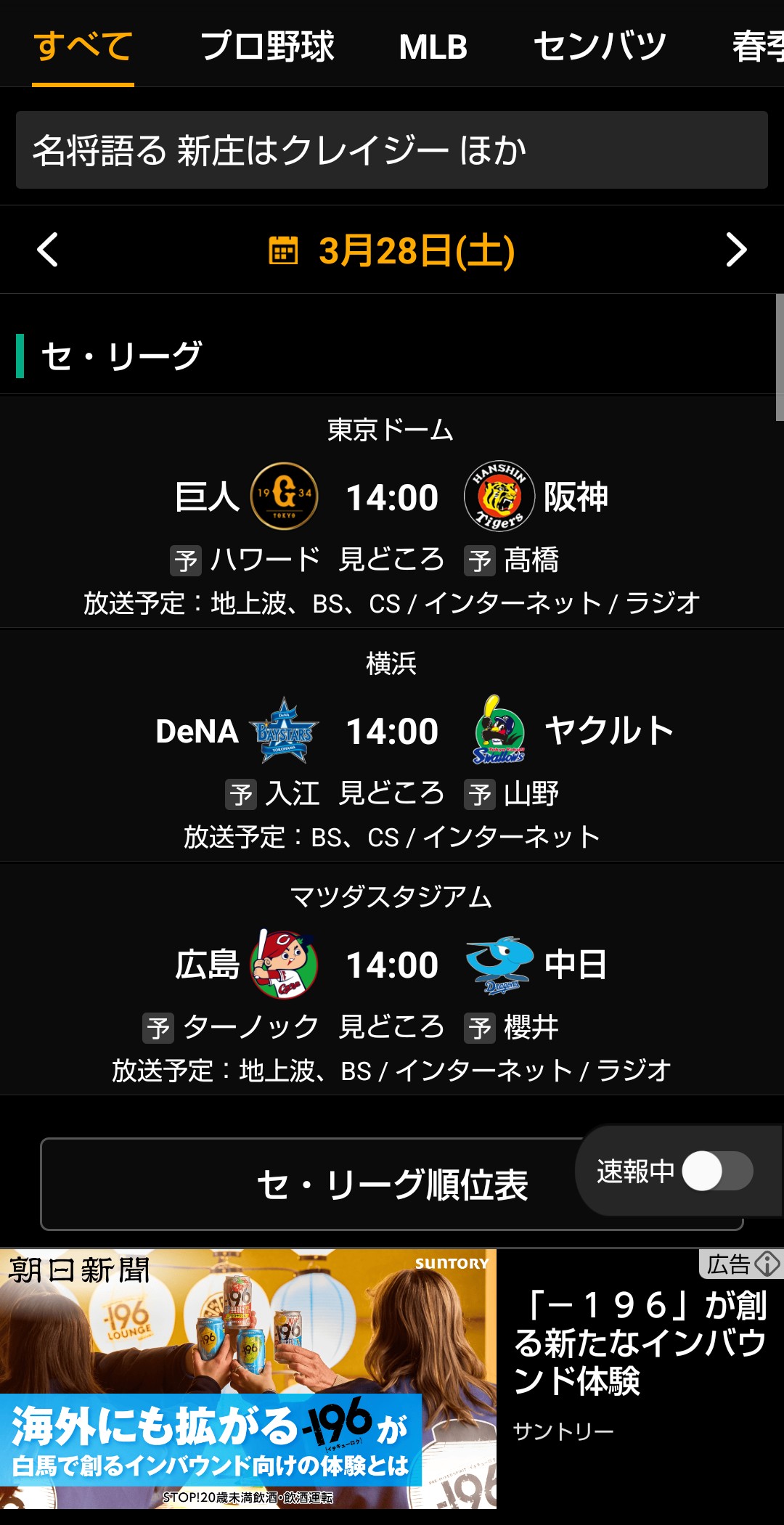 | … | 150無念Nameとしあき26/03/28(土)08:57:47 ID:QCpWTZTYNo.1396850942+初回は両チーム無得点ですわ |