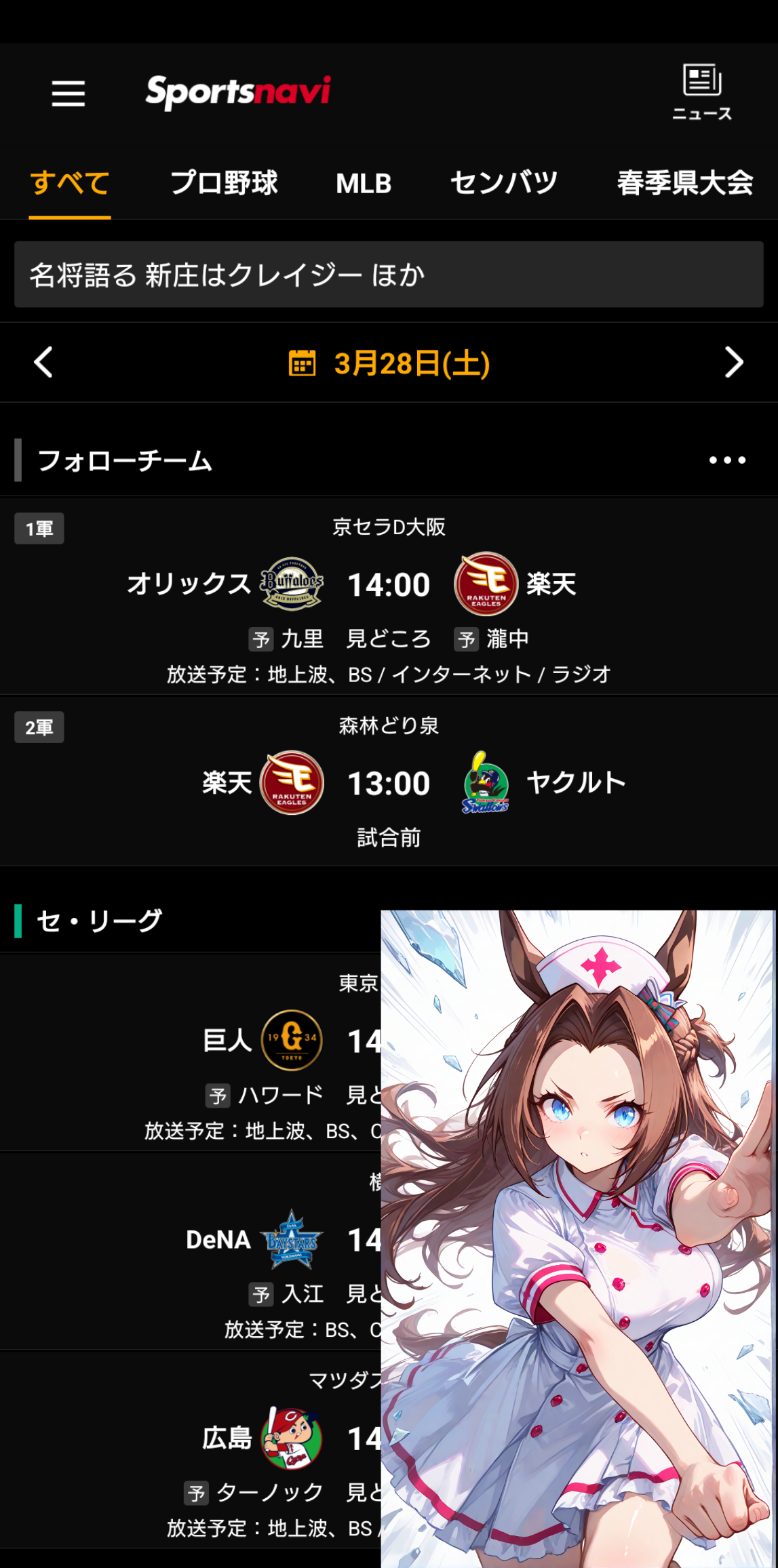 | … | 50無念Nameとしあき26/03/28(土)07:17:54 ID:2fURoQJgNo.1396839148そうだねx1 1774649874537.jpg-(313251 B) >先発は好調山野さん |