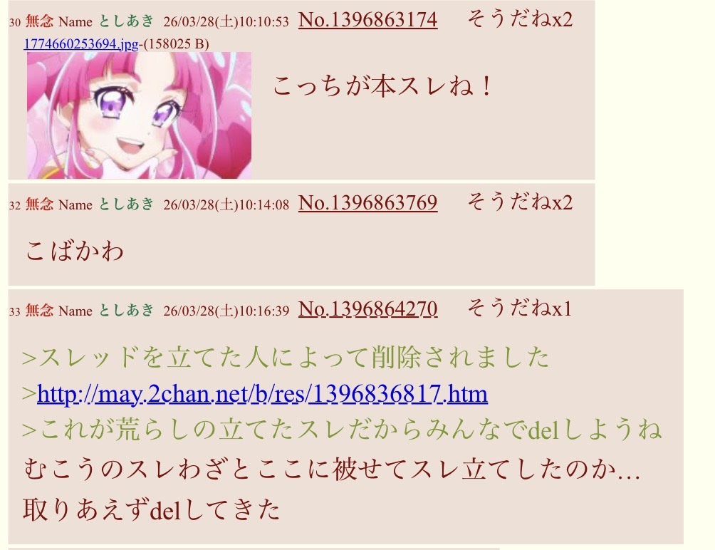 | … | 61無念Nameとしあき26/03/28(土)12:35:56 ID:C8khidAwNo.1396891382+ 1774668956112.png-(14879 B) >結局夜のプリキュア脇役のスレ立ちませんでしたねぇ! |