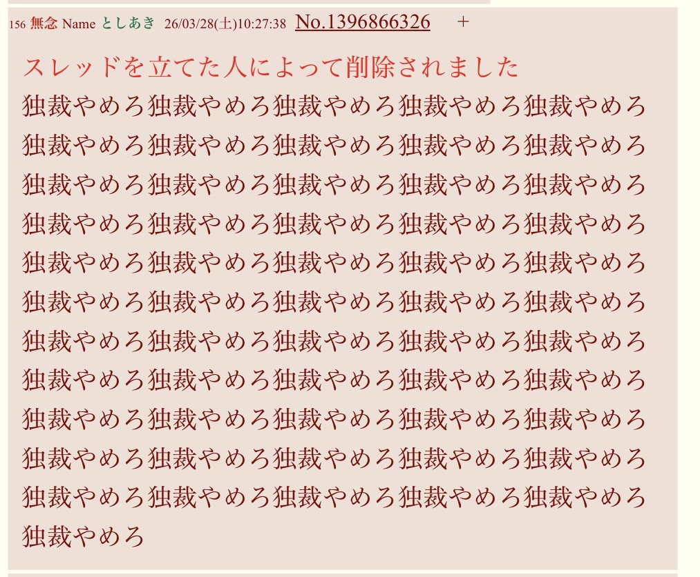 | … | 10無念Nameとしあき26/03/28(土)09:42:13 ID:lmA7pUC6No.1396858239そうだねx3>>クソスレだぞ品田ァ |
