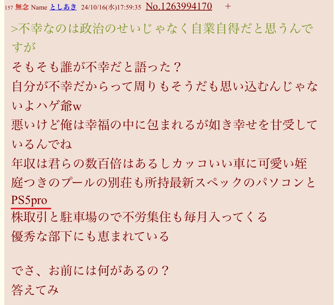 | … | 39無念Nameとしあき26/03/28(土)11:01:47 ID:OGYyZeqINo.1396872614そうだねx8sage爺「PS5PRO持ってる!」 |