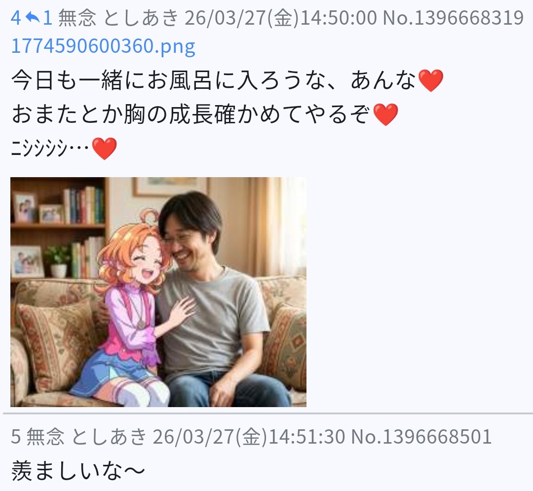 | … | 27無念Nameとしあき26/03/28(土)10:37:49 ID:YVk1DU..No.1396868303そうだねx4>ここが噂の子供部屋おじさん達が集うスレだね! |