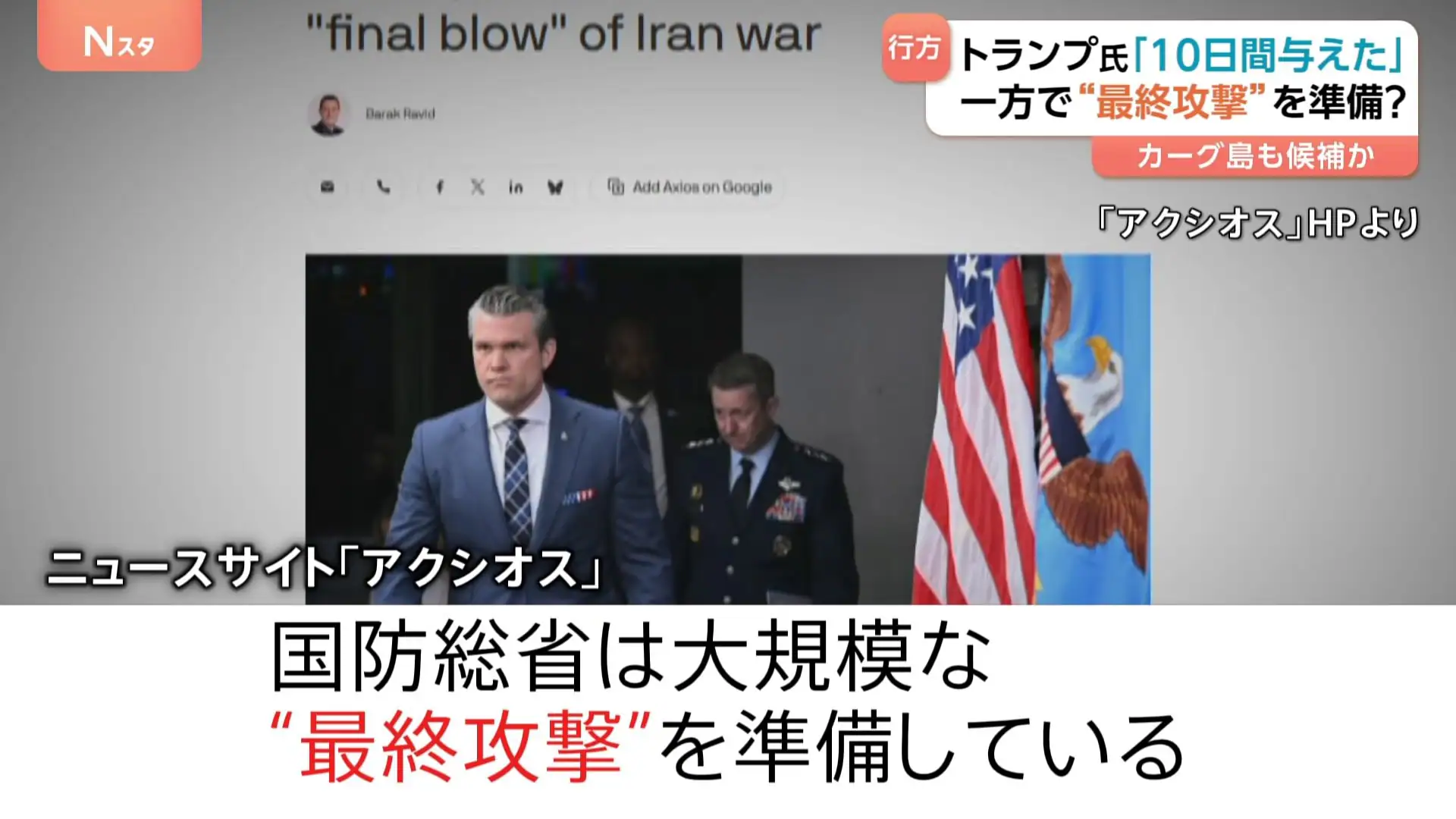 | … | 92無念Nameとしあき26/03/28(土)10:23:24No.1396865536+陸上部隊10,000人動員らしいがカーグ島にそれだけ送り込んでも全滅するだけにしかならんだろ? |