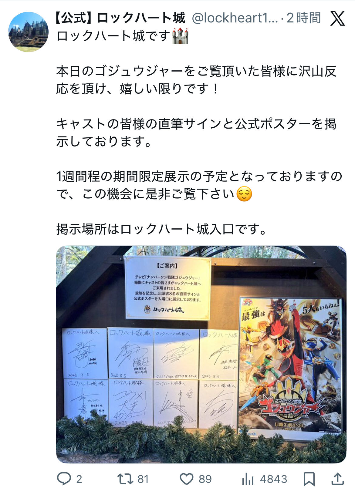 | … | 57無念Nameとしあき26/03/28(土)17:53:30No.1396957368そうだねx8>ゴジュウジャーはこいつのせいでグダらなければ個人的に歴代戦隊で一番好みだった |