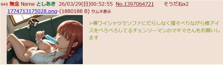 | … | 91無念Nameとしあき26/03/29(日)01:35:49No.1397071574+>エスパーだから先にリクエストに応えておくね |