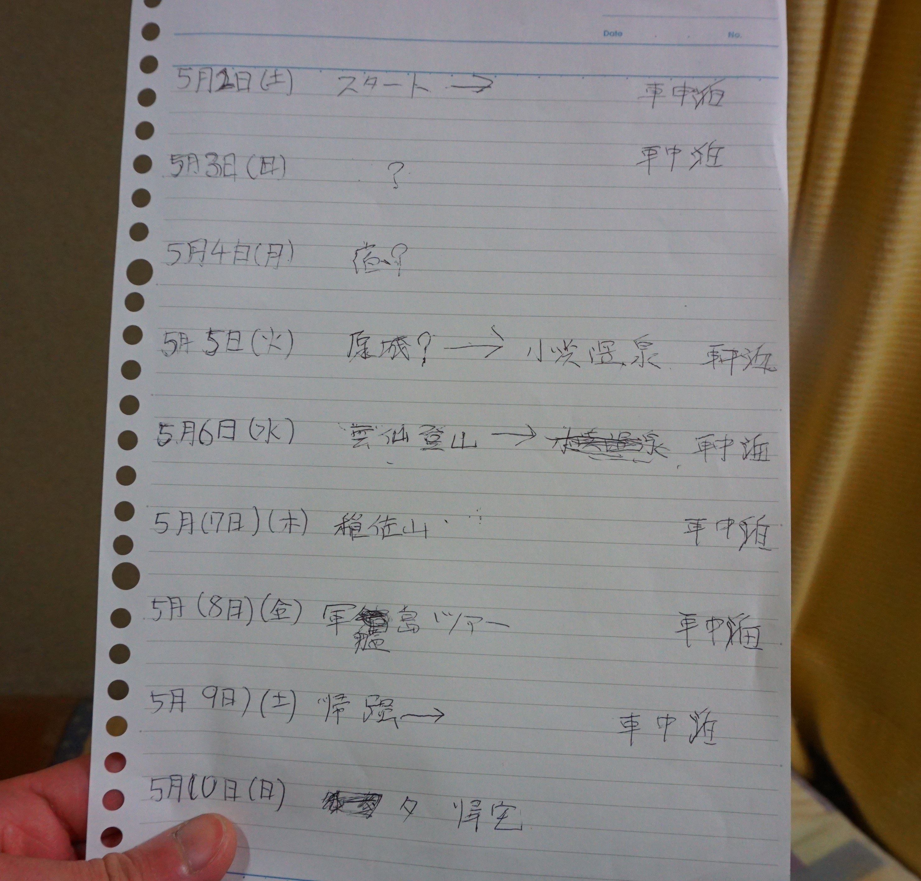 マイカーでこのスケジュールで行きたいと思います