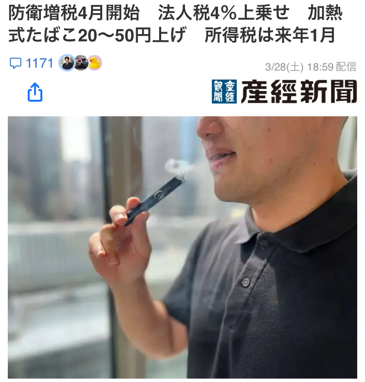 | … | 4無念Nameとしあき26/03/29(日)20:43:02No.1397279896そうだねx17従来の紙タバコもついでに値上げしとけ |