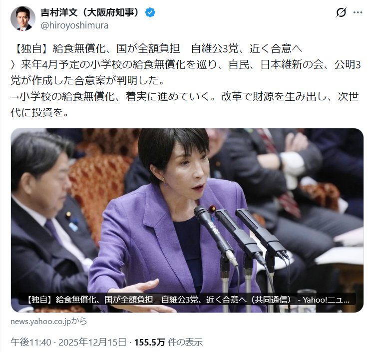 | … | 45無念Nameとしあき26/03/29(日)21:13:35No.1397289908+高校授業料と給食費無料 |